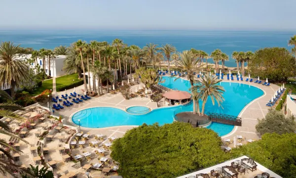 The Azia Resort & Spa is an award-winning 5-star resort situated directly on the seafront in Paphos, Cyprus. Its privileged location allows for magnificent sunsets and views of the whole bay of Paphos, and it is just a 10-minute drive away from Tombs of the Kings and Paphos Harbour. This beach resort is 4 mi (6.4 km) from Coral Bay Beach and 6.6 mi (10.6 km) from Paphos Aphrodite Waterpark.