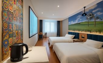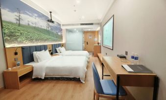訂的是雙床,其中一張床上掀開被子有頭髮。酒店外觀完全與展示出來的完全不一樣,展示的完全就是概念圖。酒店隔音也不好,晚上可以聽見外面別的房間關門聲音。當時我是看了酒店的評價才訂的這家,到了以後評價中照片裏面的樣子也並沒有在酒店裡找到,打車到地方以後完全不敢相信和訂的是同一個酒店,好評簡直和刷的一樣,有種很深的欺騙感。這個旅店我真的不知道該怎麼去形容,前台服務也一般般,無功無過,酒店裡有智能設備,但也有點傻。第二天醒來我也就馬上換酒店了,對入住需求較高和衞生環境高的來講衹能説快逃!