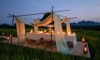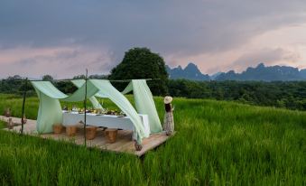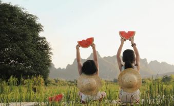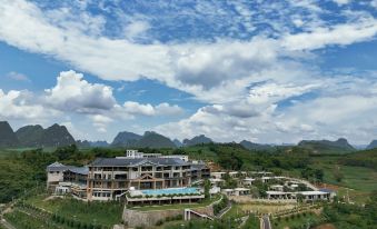The hotel is located on a sweet mountain field in Chongzuo, Guangxi. Here, the fields and paths are idyllic, and the banks are green. The Heishui River flows through this area. The unique architectural style blends peacefully with the surrounding mountain scenery. With the setting sun, misty rain, and clear blue sky, it sketches a vivid picture of a leisurely life in the mountains. The hotel offers various types of rooms to meet your diverse accommodation needs. We also have a book bar, tea room, children's playground, bar, half-mountain camping area, restaurant, meeting room and other public places and facilities to meet all your vacation needs. Look at the mountains, watch the water, explore various new experiences, escape the complexity of the city, leap into the mountains and rivers, discover nature, feel the universe, and seek another kind of life.
