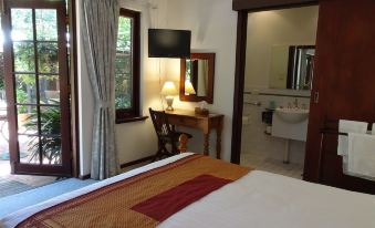Set in a beautiful tree filled garden, with your own courtyard, and outside setting for alfresco dining. With an outside folding kitchen table, most of your cooking can be done on the electric frying pan or mini BBQ, but with 5 beach side restaurants, all within walking distance, why cook? You are supposed to be on holiday!!