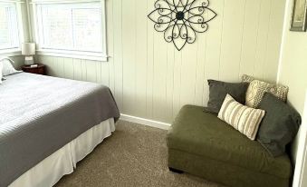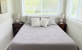 Bedroom 2: (Bright, back of house & off of family room) Queen Bed with double closet, dresser, blinds, A/C & Roku T. V.