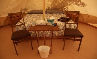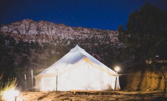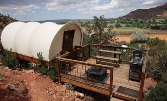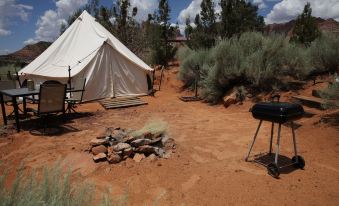 We appreciated the communication and access to staff at any hour of the day. Views were beautiful from the tent, and for a glamping experience it was nice to have a full bed, couch, AC, showers and bathrooms. It is the perfect spot between major hiking locations, and the local pets/animals were a nice touch to feel welcomed. However, tent cleanliness and access was a little troublesome - our zippers were broken off making it difficult to open and close the tent. Plus after two days, the floors and bed were covered in dirt without a daily cleanup. If there was a rowdy group staying in a tent nearby, the sound travels easily causing difficulty to sleep. Lastly, showers were more than often not clean and depending on the hour there would be little to no water pressure depending on if multiple people were doing showers or (from what we assumed) staff doing laundry. Also a good to know note is the property is literally on the Utah/Arizona line so your phone time can and will switch back and forth between time zones so be wary.