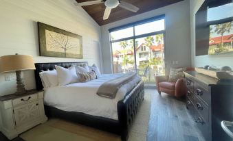 Up the open staircase you will find a spa-like master suite with a whirlpool tub and shower, high soaring ceilings and a king size bed. There are also 2 additional queen bedrooms upstairs. Each bedroom has its own 40 inch flat screen TV. The roof top deck on 4th floor is right off the master suite. Enjoy the view of the Coronado Bay and San Diego Bay skyline while fireworks pop each evening during the summer. Have a barbecue or sit back and relax on our fine patio furniture and eat from our 8 seat table.