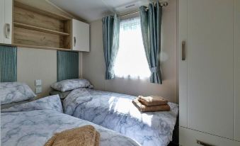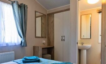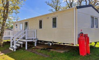 Great Thorness: Mobile home. For shared use: swimming pool (seasonal availability: 01.Jan. - 31.Dec.). Public parking. Sandy beach 3.7 km. "Beachlands", 4-room mobile home 95 m2. Object suitable for 6 adults. Living room with 1 sofabed, 1 pull-out bed, open-hearth fireplace, TV and DVD. 1 room with 1 double bed. 1 room with 2 beds. 1 room with 2 beds. Open kitchen (oven, Gas stove, 2 gas rings, toaster, kettle, microwave). Shower/WC, sep. WC. Terrace. Facilities: Internet (WiFi, free). Please note: non-smokers only. Smoke alarm.