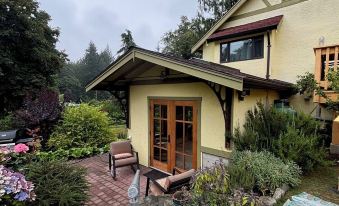 Forget your worries in this spacious and serene character suite. Welcome to the Village Garden, in the heart of the Shawnigan Village. Minutes walk to a bakery, coffee shop, sushi, pizza and more. Lake access within walking distance. The suite features beautiful garden access, outdoor dining/BBQ area, full kitchen and shared laundry. The living room has “the world’s most comfortable sofa bed” for extra family members and features a heat pump so you can adjust the temperature to your comfort. Weekly and Monthly discounts available during fall and winter months. Inquire for details!