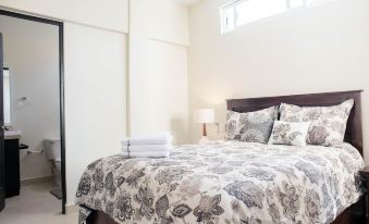 Our newly built & modern suite features two bedrooms, two bathrooms, & a completely functional kitchen for our guest convenience. Every feature has been added to provide complete comfort. Enjoy a morning swim in the ground level swimming pool & a relaxing evening in the roof top pool with panoramic view of Cozumel's historic Corpus Christi Church, neighborhood & breathtaking sunsets at a distance. Perfect option for families & for those looking to indulge in a modern & elegant accommodation.