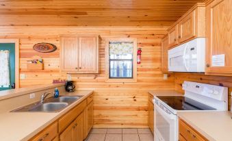 This was our first time at the Coyote Ridge cabins. The interior is gorgeous with what I think are knotty pine planks. So warm and inviting! The A/C kept the cabin just the right temperature. I was happy to find some cooking basics, like the coffee pot, a cook pot, etc. (Husband can't function without coffee!) The setting itself was just wonderful. We sat out on the porch and listened to all the birds. Would definitely book with you again!