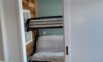 2 bedrooms: 2 bunk beds and 1 queen bed