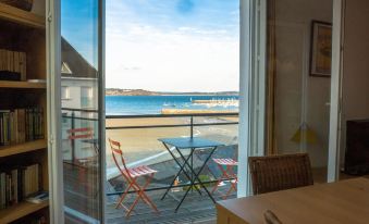 With a superb view over Morgat beach and Douarnenez bay. The residence is located in the heart of Morgat, 50 m from the beach, between the town and the marina. The property is private and enclosed. With around 70 m² of living space, it offers sea-view terraces from the lounge/dining room and bedrooms.