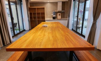 設施:(10人房型)客廳餐桌很大,適合朋友聚會,户外有個小院子。設施設備略顯簡單,但最基本的都有,個人覺得無需為此挑剔。小小建議就是,床頭還是需要類似牀頭櫃(榻榻米房間確實沒有牀頭櫃的位置了)的擱板或者置物架,然後有放包包的地方吧,實在不行,牆上多弄幾個樣式好看、質量結實的掛鈎也行。