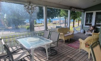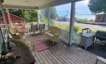 My cousins and I enjoyed exploring this part of the Upper Peninsula as it was an area we have yet to visit. The porch was lovely to sit on and enjoy our chats and to watch the sunrise. It has a nice view of the passageway. It was fun to watch all the large shipping barges go by along with the ferry to and from Drummond Island. The boat docks were nice to visit too. The only thing was there was no air conditioning which made some of our nights challenging to get through comfortably. But overall we would recommend this place to others. Gary, the owner, was very nice and easy to work with when we needed his help with a slight bathroom issue.