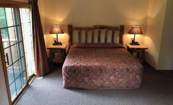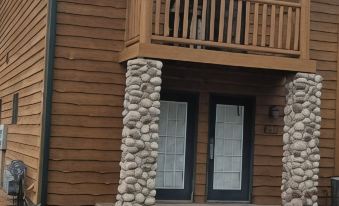 Rustic log style furnishings. The generous 1,800 square foot Villa sleeps 8 with 2 bedrooms, 2 bath, comforting fireplaces, televisions, a patio, 2 balconies, washer/dryer, kitchen & dining area.