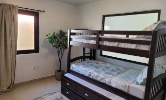 2 bedrooms: 3 bunk beds and 1 queen bed