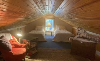 Living room with 42' flat screen TV, dining room, bathroom and kitchen, two with queen beds and a third with a full size bed, and a loft with two twin-sized beds. separate 15 x 12 pergola with slate flooring, adirondacks, fireplace and dining seating for four. The pier can handle motorboats, canoes, or rowboats. Four kayaks are available. Linens and paperware provided along with all kitchen equipment and dining ware.About pets:Pets allowed.About checkOut:Check out before 11:00 AM.About children:Children allowed: ages 0-17.Adults responsible for children.About customRules:Please see Rental Agreement.About checkIn:Check in after 3:00 PM.About smoking:Smoking is not permitted.About events:Events allowed.