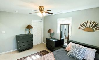 Bedroom One - Queen Bed with 2 Dressers and full size Mirror and Closet
