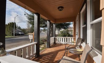 Outside, the cottage continues to charm with a fully fenced yard perfect for pets, a covered front porch, and a back patio ideal for unwinding after a day of wine tasting. Surrounded by lush flower gardens, herb beds, fruit trees, and blueberry bushes, this home earns its name in every season. Guests can enjoy al fresco meals with a gas grill and patio seating or take a leisurely ride through town using one of the two complimentary bicycles. Yard games like croquet add a playful touch, and during warmer months, you’re welcome to pick fresh herbs and fruits for your culinary creations.