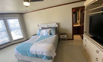 5 bedrooms: 2 bunk beds 1 single bed 1 queen bed and 2 king beds
