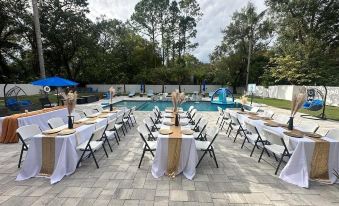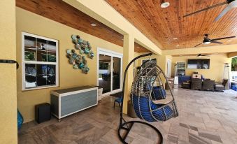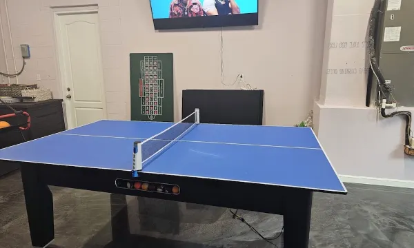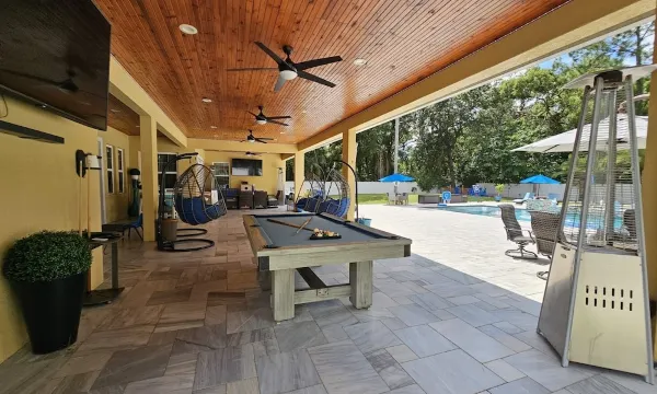 Your cozy getaway awaits in Tampa at this adorable house with 5 bedrooms including 1 king bed, 2 queen beds, 2 bunk beds, and 2 twin size beds, there's plenty of space for all your guests. The 4 bathrooms are equipped with hair dryers and showers for your convenience. In addition, there's a lovely living room with a comfy sofa bed for some extra relaxation, 3 additional foldable pull-out beds available for extra guests and air mattresses. Stay connected with Wi-Fi, keep your clothes fresh with the washing machine and dryer, also stay in shape at the fitness room. With AC and heating, you'll always be comfortable. We also have a heated pool and jacuzzi, outdoor bar and patio with Billard table and TVs available. Plenty of space to accommodate 20 guests. We think our place will help you experience everything Tampa has to offer.About pets:Pets allowed: dogs and cats less than 50 lbs per pet (limit 2 pets total).About checkOut:Check out before 11:00 AM.About children:Children allowed: ages 0-17.About checkIn:Check in after 3:00 PM.About smoking:Smoking allowed: in designated areas.About minBookingAge:Minimum age to rent: 21.About events:Events allowed: family gatherings, birthday parties, weddings.Maximum event attendees: 40.