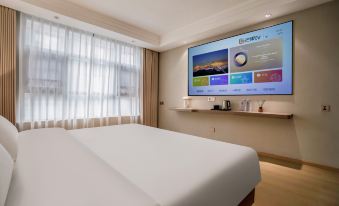 The guest rooms start from 35 square meters and adopt a modern and simple style. The lines are simple and smooth, and the color combinations are soft and elegant, giving a refreshing and comfortable feeling. The rooms are equipped with high-quality furniture and facilities. Some room types are audio-visual rooms, equipped with high-definition projection equipment and surround sound systems, with a vast selection of film and television resources to choose from, allowing you to enjoy a visual and auditory feast after a tiring journey. All guest rooms are furnished with 80-thread-count long-staple cotton bedding and silent mattresses to ensure a good night's sleep.
