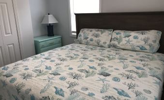 We stayed for a week and we were impressed with all the amenities includes to make our stay easier. The homes has three bedrooms, one King bed, one queen bed, and two twin beds. Open kitchen and living room area with nice patio and deck with umbrella and table. Charcoal grill for use with all utensils. Very nice home with room for 6.