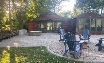 Outside Area includes a large brick patio with firepit, Adirondack chairs, gas grill and dining table. In-season, a pier, canoe and kayak available for recreation, fishing and swimming. Two bikes provided.