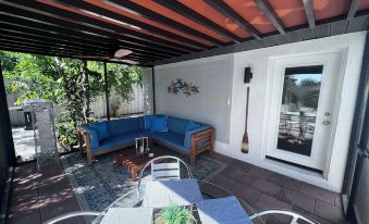 The pool area is truly a retreat in its own class as in the pictures. Upon request, the pool is heated in the cooler months. The resort style set up is private in nature with Mature trees and is well laid out. The pool has its own lounging area near the front entrance. This is where I love to have my coffee in the morning. The ambiance is amazing. There are lots of places to lounge including an Adirondack chair lounge area between two palm trees. Also, there is a cabana trellis for having a mid-day siesta. The deck area has 4 lounge chairs. Also equipped in this area is a grill and other shaded areas to relax in. And there is more, from sunset on, the backyard comes to life with the night ambiance of all the lighting of the pathways. The multi color pool light and the lit trees gives you the feel of being in paradise.