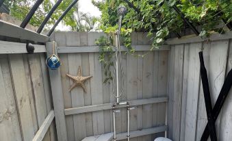 Let us start with the dining room. The dining room area with the champagne bubble lights over the decorative coastal table, only to command itself ready for a feast. Adjacent to the dining area is the kitchen. Along with its beauty and charm, this kitchen has adequate and practical space for work area. The modern pantry has tons of space for all your dry goods, water, drinks in general. Enough to last the entire stay and then some. Truely a pleasure to prepare your meal in this kitchen. Also, the kitchen is well equipped with a K cup with the option of coffee grinds for individual 1 cup or a pot of coffee, easy to use retro yet modern microwave, state of the art toaster. and utensils and silverware are all high quality. No shortcuts taken here. I myself enjoy cooking gourmet meals and keep a variety of spices at hand along with oils and condiments. The refrigerator has great drinking water and good ice maker.