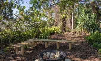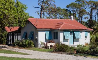 Over 1.2 acres of scenic Florida landscape to explore. Home to 50+ different plants, birds, animals and walking trails you are sure to feel like you are in a jungle oasis. Just 1 mile to Manasota Beach the shark tooth capital of the world! Explore all the beach has to offer with a 3-4min car/bike ride. The house has a huge lanai with pool, tv and seating areas. Two bedrooms and 1 bathroom with a tub. Just ten min away 20+ restaurants and grocery stores. Escape the noise and enjoy nature.