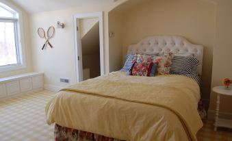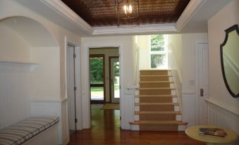 My husband, 2 daughters with their families and I spent a great week in this lovely home - 6 adults and 4 kids ages 1 to 6. While this would be a fabulous place for adults, it was also very family friendly. We ate dinner in the large dining room, played with Legos in the screened porch on a rainy morning and made s'mores in the outdoor fireplace on the deck. The front and back yards were great play spaces. The kitchen had a huge supply of dishes (plastic and china), silverware and pots and pans. There was a double oven, large fridge and pantry. We used it all. There was a nice variety of toys and especially nice kids' books. Each family had bedrooms and bathrooms on their own floor, so we could choose to be together or have some privacy.