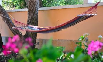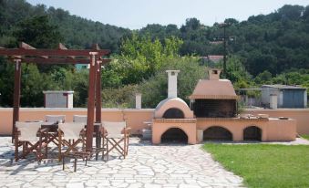 In the property apart from the nice grassy and blooming garden and the oak trees there is an outdoor shower, a barbeque area and a communal launderette place. Bed linens, towels, Wi-Fi, air conditioning, flat screen TV are provided, while parking space is available on the road outside of the property.Pets are not allowed .