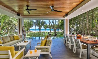 Our villa is Esterillos' newest beachfront luxury home. This brand new beautiful villa is complete with privacy, amenities and luxurious interiors. In addition to interesting architectural details, this gorgeous villa enjoys a prime location! Listen to the sound of the waves crashing right outside your master bedroom balcony or on your large back terrace complete with outdoor living, dining and BBQ. Boasting 5 large bedrooms and 4.5 baths, this villa is perfect for a large group or a family who wants to enjoy time on the beach. There are multiple cafés and restaurants located just down the beach in both directions and several daily happy hour locations that are popular with visitors. Manuel Antonio is just 30 minutes South and Jaco is just 15 minutos North. Come and see for yourself why this home embodies tropical living at it's finest!About pets:No pets allowed.About checkOut:Check out before 10:00 AM.About children:Children allowed: ages 0-17.About customRules:All events must be pre-approved. No outside vendors allowed. All events, staff and planning must be arranged through the villa..Early check-in (Prior to 3pm), Late check-in (9pm-12am) and early check-out (Before 6am) incur an additional fee. Must be pre-approved..About checkIn:Check in after 3:00 PM.About smoking:Smoking is not permitted.About minBookingAge:Minimum age to rent: 21.About events:Events allowed: family gatherings, birthday parties, weddings.Maximum event attendees: 25,Events must be pre-approved and event fees apply!.