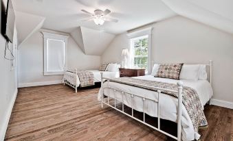 Violet’s Farmhouse is a newly built house featuring a mix of antique and new furnishings. Our farmhouse is located in a secluded neighborhood in West Fayetteville and has 3 bedrooms & 3 bathrooms with enough room for 8 guests. This brand new home has hardwood floors throughout (no carpet), brand new mattresses, and brand new appliances. If you have a cooking aficionado in your group they’ll love cooking on our 8-burner gas stove range and oven.