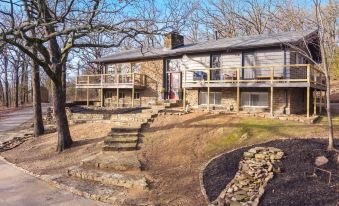 Head outside to enjoy our outdoor living areas! Walk down to the pool (closed in the colder months) and hang out spot complete with lounge chairs and a dart board. On the upper patio, you'll find plenty of seating overlooking the front and side yards. On the lower deck by the garage, you'll find a gas grill and fire pit. This is the perfect place to enjoy that fresh Arkansas air! If you are visiting to hit the mountain bike trails, our garage space has plenty of storage, bike tools, and a smart TV to make it another perfect hang-out space.