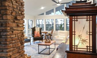 Experience Fayetteville at The Woodland, a five-bedroom, four-bathroom home offering all of the luxury amenities you need to have the perfect vacation with your crew! Located within minutes of everything the city of Fayetteville has to offer; while also sitting on natural tree-filled acreage, our home is the best of both worlds! During your stay, enjoy two cozy living rooms -stocked with games, a fully stocked kitchen, large outdoor patios, a fire pit and an inground pool (closed in the colder months).