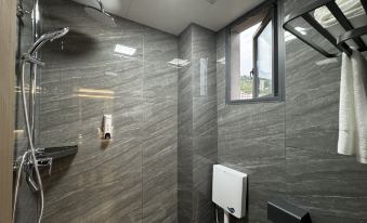 房間很小但是床拼起來很大,三個人睡感覺隔了好遠。拖鞋洗臉巾浴巾等都有一次性的。廁所很小,洗手枱在廁所外面,感覺洗臉倒是很方便。就是房間設施簡陋,國慶節這個價位就沒什麼好嫌棄的了。哦,因為是一樓外面樹林的小蟲子會飛進屋,這點很難受,其他都還好,早餐也可以。