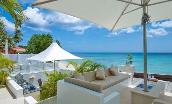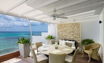 3 bedroom house on the beach in St James, West Coast of Barbados. Perfect for honeymoons and families. The property has wonderful outdoor living areas- a BBQ area with sink fridge built in ice box etc... a bath to sip your cocktails watching the sun go down, 2 dining areas and outdoor seating area.