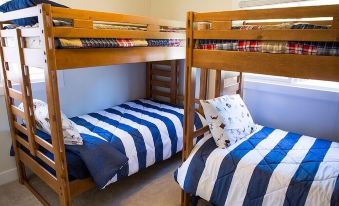 4 bedrooms: 2 bunk beds 1 queen bed and 2 king beds