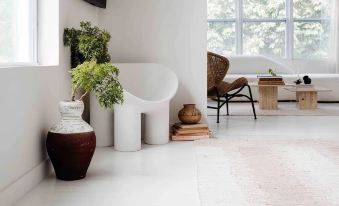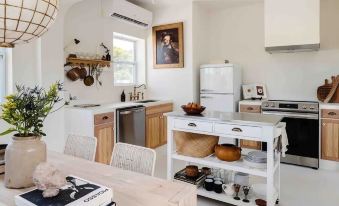 French Modernist meets eclectic minimalism. The Loft imparts a sense of modern grace to this grand old 1920's house that we lovingly call L'Auberge Du Croissant; A handsome Mission style house in the heart of Croissant Park that had seen better days now respectfully rejuvenated. Sundrenched rooms with a muted palette create a calm and restrained interior providing a background for a mix of classic and contemporary furnishings and eclectic art.