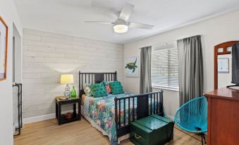 Second bedroom with full size bed and a bunk area with two twin beds, ideal for children or additional guests.
