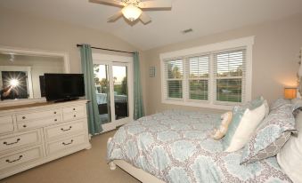 On the second level of Steel Magnolia you will find 3 more bedrooms. One bedroom has a Queen bed with superior views and a large private bath. Another Queen Size bedroom leads out to a private deck overlooking the golf courses, ponds, and ocean. The deck is a great place for private tanning or just reading a great book. The 3rd bedroom has 2 bunk beds that will sleep 4 and a Jack and Jill Private Bath.