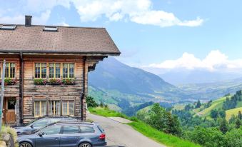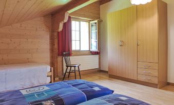 Rustic farmhouse, 3 storeys, detached, surrounded by meadows and fields. In a secluded, quiet, sunny position, 3 km from the skiing area, in the countryside. For shared use: patio, pergola. In the house: central heating system. Narrow motor access (mountain road). In Winter: please take snow chains, 4x4 car recommended in winter. Parking at the house. Shop 6 km, grocery 6 km, restaurant 3 km, bus stop "Frutigen, Bahnhof" 6 km, railway station "Frutigen" 6 km, outdoor swimming pool 7 km, indoor swimming pool 7 km. Tennis 6.5 km, riding stable 6.5 km, walking paths from the house 10 m, cable car 3 km, skisport facilities 3 km. Nearby attractions: Hängebrücke Hohstalden, Tellenburg Frutigen. Well-known ski regions can easily be reached: Elsigenalp 3 km, Adelboden - Lenk 10 km. Well-known lakes can easily be reached: Oeschinensee, Blausee, Thunersee. Please note: car recommended. The owner lives in the same residence. "Bühl", 3-room apartment on the top floor. Bright, partly with sloping ceilings, practical and cosy furnishings: living/sleeping room with 1 sofabed (140 cm, length 200 cm). 1 large room with 2 beds (90 cm, length 200 cm), 1 french bed (160 cm, length 200 cm). Large kitchen-/living room (4 hot plates, oven, toaster, kettle, freezer, electric coffee machine, Capsules for coffee machine (Nespresso) extra, fondue Set (cheese)) with dining nook. Shower/WC. Side view of the mountains and the countryside. Facilities: washing machine, baby cot for up to 3 year olds, hair dryer. Internet (WiFi, free). Please note: non-smokers only.