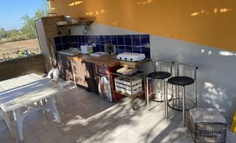 Casa Martilde, is a delightful country house, completely in harmony with its land. The house is located in the countryside between Galatone and Santa Maria al Bagno, and about 7 km from Gallipoli and 5 km from Porto Selvaggio and 4 km from Santa Maria al Bagno. Optimal position to reach all the various marinas and the localities of the Salento hinterland. You will simply be delighted by the peace and tranquility that Casa Martilde offers its guests, unique scents and colors will deeply mark your senses. The house consists of 2 large double bedrooms, of which Martina room with ensuite bathroom, air-conditioned, air-conditioned living room and kitchen and bathroom, 2 shaded external verandas one to the east and the other to the west complete with tables and chairs, a particular solarium of about 30 square meters obtained in a portion of a quarry with 4 solarium beds, a prive always obtained in another quarry with rocking sofas to spend the evening relaxing hours, barbecue, outdoor shower, large exclusive parking and places shaded cars, over 3000 square meters of garden, equipped with new fixtures complete with mosquito nets, alarm system. We also have a vegetable garden where you can pick vegetables and vegetables present in season. The house is also equipped with a washing machine and dishes. In the photo section and at the bottom of the page you will find a link with a beautiful music video and wonderful images of Salento. Welcome basket on arrival with typical local products. Rates are calculated for 4 people, children up to 14 years do not pay, for each additional adult guest € 10.00 per night regardless of the period. LAST NEWS !!! FREE WI-FI.