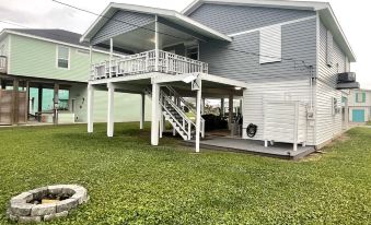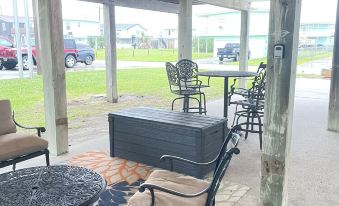 While your meal is cooking, hang out with family or friends on the patio under the home. Play some outdoor games like Yardzee (large Yahtzee) or ring toss, put the hammock up and simply swing and relax. Upstairs guests can enjoy the sunshine and ocean breezes on the East and South facing decks; On cooler nights, warm up next to the tabletop firepit from the comfort of the upper deck or view the stars while sitting on the Adirondack chairs around the outdoor firepit.