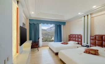 房間是雪山景房,外頭是民居,房間煙味超級大,空調會比較響。我可以接受,但如果是對房間衞生有比較高要求的還是不要來了。陽光很好,房間設施沒有明顯污漬,但是的確算不上非常乾淨,150多的價錢,這麼大其實不介意的話就已經很可以了。前台是24小時的,會有人直接睡在那邊,所以有什麼服務需求都可以找他們,還是比較方便,酒店2樓新開了一家火鍋,聽説還是不錯的但我沒去吃