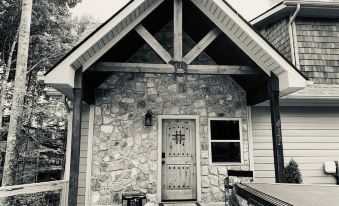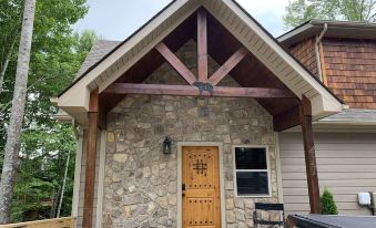 Newer construction located in the heart of the Arts and Craft district in Gatlinburg. One quarter mile to the trolley and three quarters of a mile from Rocky Top Sports Complex. This fully professionally furnished three bedroom, three bathroom cabin comfortably sleeps 8-10. The exterior features Hardi siding, cedar shake and real English Mountain Stone. The interior is wood throughout, floor to ceiling Mountain Stone Gas Fireplace and hardwood floors. Granite countertops can be found in the kitchen and bathroom.