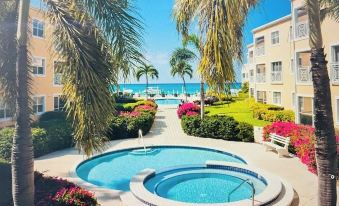 You’ll have access to a sparkling swimming pool with plenty of loungers and beds for relaxing. Tennis and pickleball courts are available for your use, as well as a fitness room to keep up with your workout routine. On site Gas BBQ grills are provided for outdoor cooking and dining. Direct beach access means you’re always just steps from Seven Mile Beach, and lightweight beach chairs are available upon request for your convenience. For families, we offer beach toys and cribs upon request. The property is surrounded by lush tropical gardens and beautifully manicured walkways.