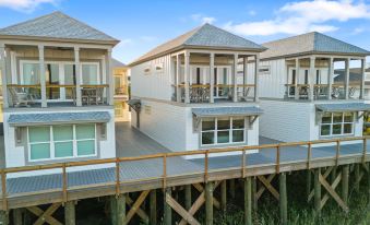 DETAILS: Winyah Bay Club features 17 stylish, individual cottage units, each ideal for large wedding parties, golf enthusiasts, and families. This cottage offers two spacious bedrooms, two and a half baths, and a master suite with breathtaking water views. The open-plan living room, kitchen, and dining area on the second floor are designed to maximize the stunning waterfront vistas, making every stay memorable and luxurious.