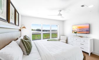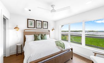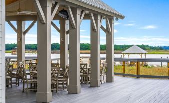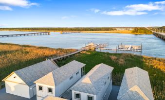 DETAILS: Winyah Bay Club features 17 stylish, individual cottage units, each ideal for large wedding parties, golf enthusiasts, and families. This cottage offers two spacious bedrooms, two and a half baths, and a master suite with breathtaking water views. The open-plan living room, kitchen, and dining area on the second floor are designed to maximize the stunning waterfront vistas, making every stay memorable and luxurious.