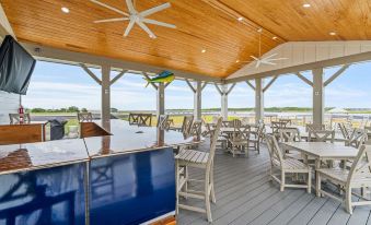 Unwind by our cozy pool, which offers private comfort zones, or gather in the lively common area, complete with a custom bar featuring a handcrafted 12-foot-wide boat transom. For those who enjoy cooking, the outdoor grill and Blackstone griddle offer a perfect setup to prepare fresh meals, especially for anglers wanting to cook their catch from the waters of the Winyah Bay or the Atlantic.