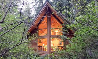 This brand new 2-story 1-bedroom 1-bath cozy cedar cabin is the perfect couple's retreat! The 1st floor features an open living/dining area with a freestanding gas fireplace, vaulted ceilings, a Hide-a-bed, and an expansive window area. The 1st floor also includes a fully equipped kitchen, and a 3/4-bath with a laundry area including a stack washer/dryer. The entire 2nd floor is a large loft sleeping area with 1-queen bed and 1-twin bed, which is great for the kids! Just steps away from the cabin is a gazebo covered Hot Tub and a gas grill! This pet-friendly vacation property will sleep 4 to 5-persons (enforced Maximum Occupancy!).